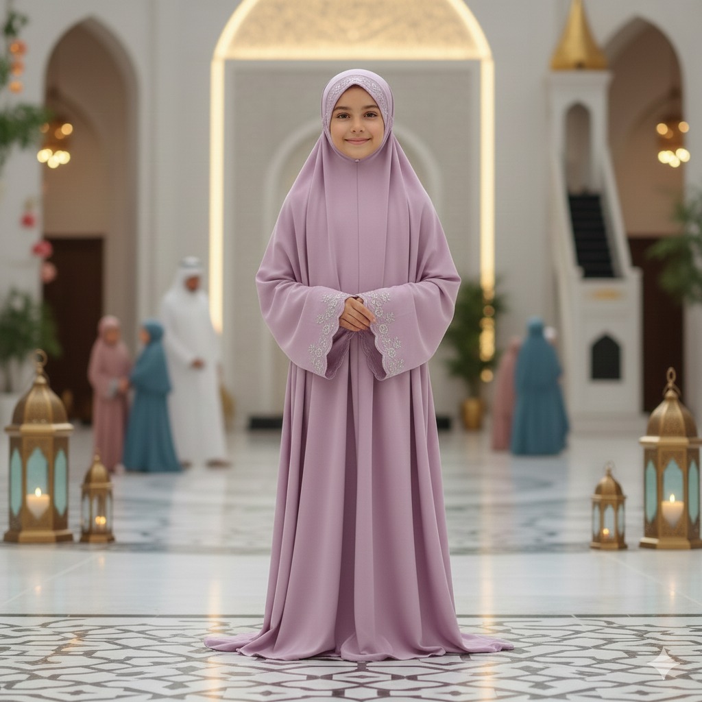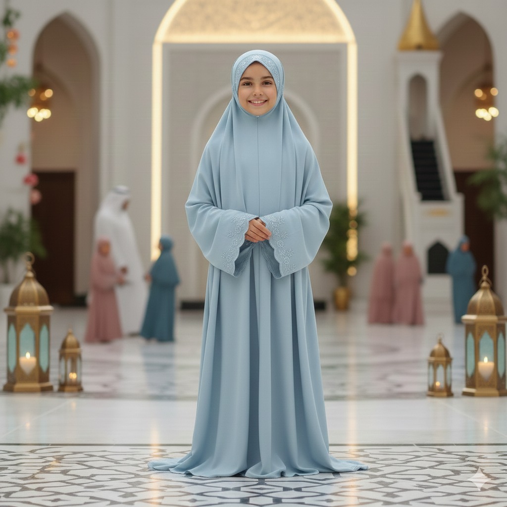 موديل مميز جداً يجمع بين الراحة والاحتشام بشكل محبب للأطفال. الخامة الاسكوبا معروفة بنعومتها وانسيابيتها، مما يجعل الإسدال مريحاً في اللبس ولا يحتاج لكيّ مستمر، ليظل شكله مرتباً طوال اليوم.